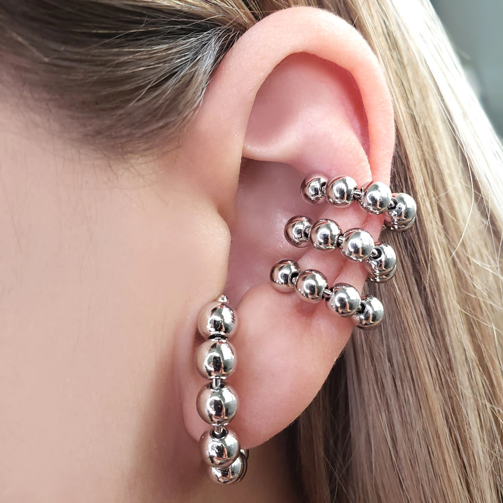 Elegante e moderno, o brinco ear hook de bolinhas banhado em ródio branco é a escolha perfeita para quem busca sofisticação com um toque contemporâneo. Com design curvado que se encaixa suavemente na orelha, ele é composto por esferas lisas e brilhantes que trazem um visual minimalista e, ao mesmo tempo, marcante. Ideal para compor desde looks casuais até produções mais elaboradas, esse acessório é leve, confortável e irresistivelmente estiloso.