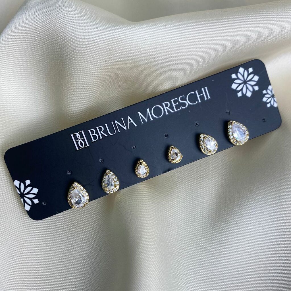 Esse trio de brincos em formato de gota é a definição de sofisticação com um toque clássico e atemporal. Com banho de ouro e zircônias cravejadas que capturam a luz com intensidade, cada tamanho oferece uma proposta diferente, do mais delicado ao mais marcante.