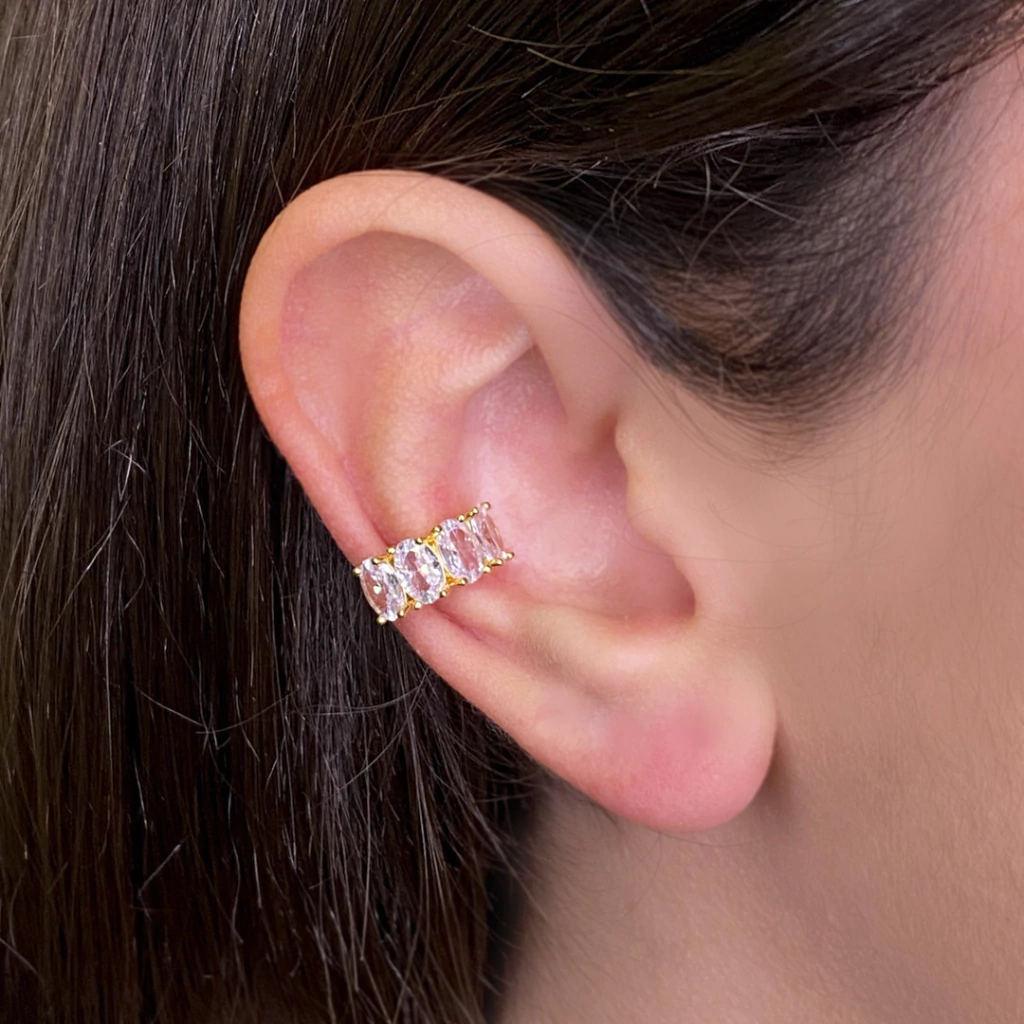 Maravilhoso piercing ajustável com cristal oval banhado em Ouro 18k. Uma peça lindíssima e elegante para compor com brincos no segundo furo. Faça lindas composições e arrase muito!