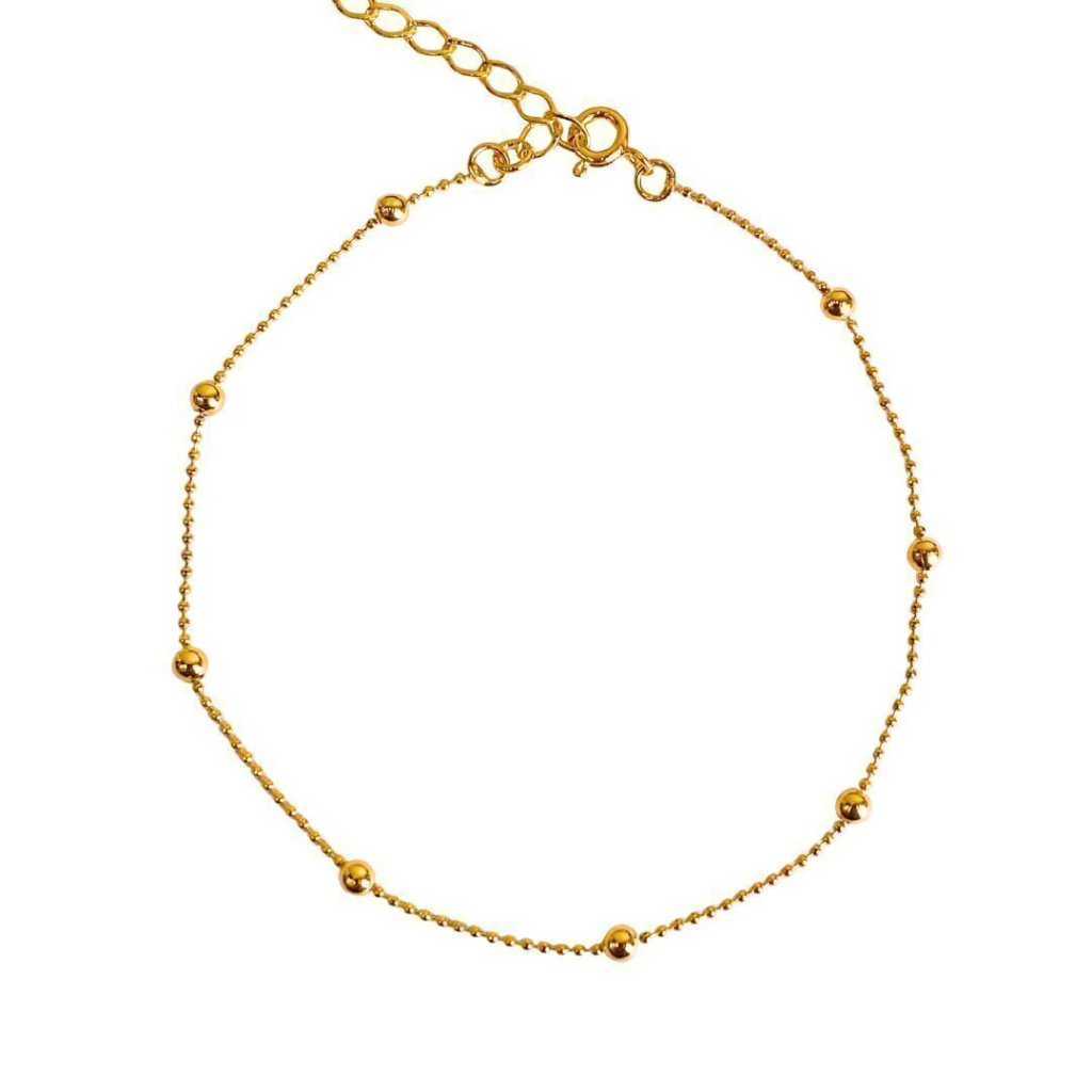 Essa tornozeleira com bolinhas intercaladas é aquele toque sutil que transforma o look. Com banho em ouro, ela garante um brilho sofisticado e resistente, ideal para quem ama joias discretas, mas cheias de estilo.